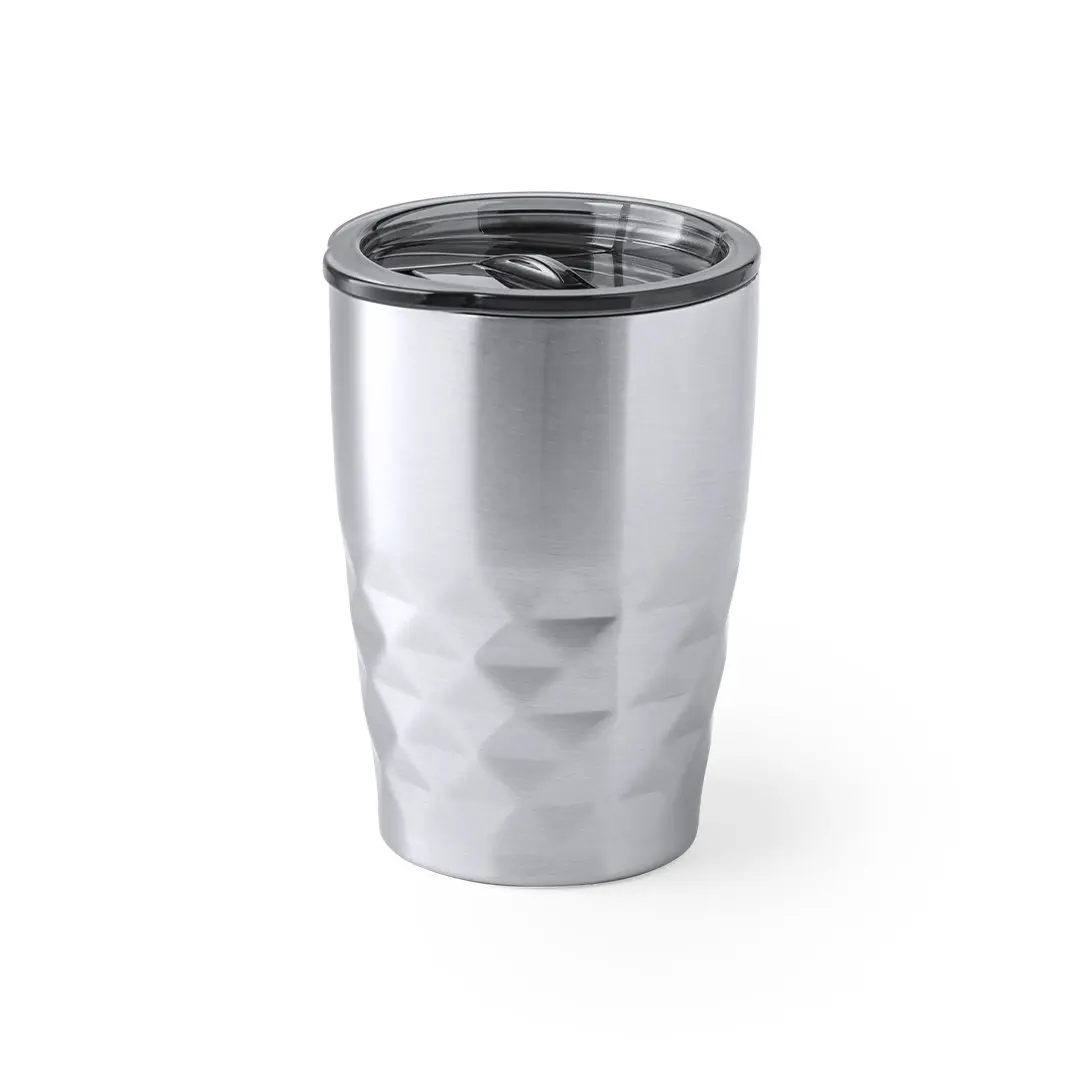 Verre thermique en acier inoxydable, avec double paroi et isolation sous vide en cuivre. Il vous permet de garder au chaud et au froid pendant une plus longue période, atteignant respectivement 8 et 24 heures. Capacité de 350ml, et disponible dans une large gamme de couleurs métalliques. Présenté dans la boîte attrayante de conception.