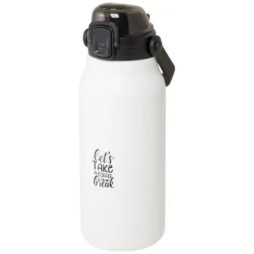 Cette grande bouteille en acier inoxydable recyclé certifiée RCS vous permettra de vous hydrater tout au long de la journée avec style. L'isolation sous vide en cuivre permet de garder les boissons chaudes ou froides pendant plusieurs heures et, grâce à sa poignée pliante, il est facile à transporter. La bouteille est étanche et dispose d'un mécanisme d'ouverture à bouton facile. Capacité de 1600 ml. Livrée dans un coffret cadeau en carton recyclé.