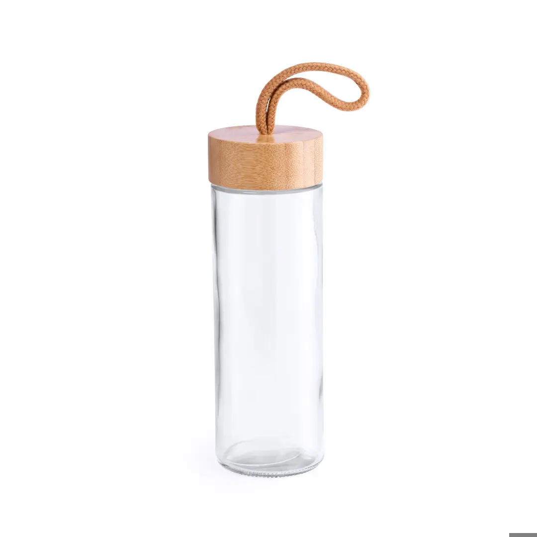Gourde de la gamme éco-friendly. Capacité de 420 ml. Corps en verre et bouchon à viser en bambou. Cordon tressé de couleur naturelle idéal pour le transport. Présenté dans une boîte individuelle de design attrayant. 430 ml présentation individuelle. Verre / Bambou