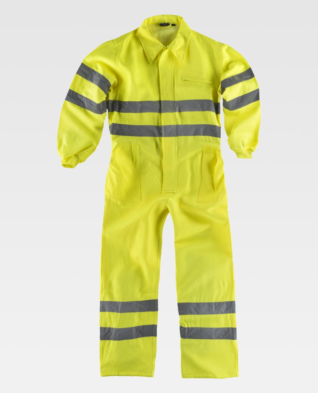 Combinaison haute visibilité avec bandes réfléchissantes. Fermeture zippée à double tirette cachée par un rabat velcro. Un sac de poitrine intérieur avec fermeture zippée, deux poches à ouverture en biais sur les côtés. Un sac patch arrière. Deux bandes réfléchissantes sur la poitrine, le dos, les manches et les jambes. Poignet élastique. élastique dans le dos Combinaison haute visibilité avec bandes réfléchissantes. Fermeture zippée à double tirette cachée par un rabat velcro. Un sac de poitrine intérieur avec fermeture zippée, deux poches à ouverture en biais sur les côtés. Un sac patch arrière. Deux bandes réfléchissantes sur la poitrine, le dos, les manches et les jambes. Poignet élastique. Élastique à l'arrière.