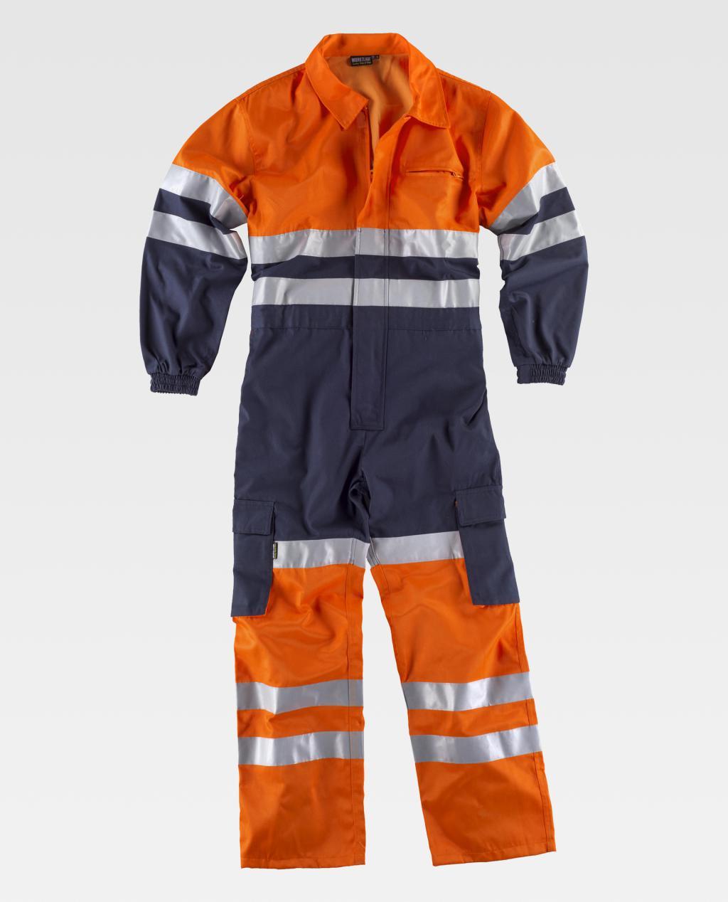 Plongeur combiné avec haute visibilité et bandes réfléchissantes. Col chemise et fermeture zippée en nylon à double tirette dissimulée par un rabat velcro. Un sac de poitrine intérieur avec fermeture zippée, deux poches latérales à ouverture en biais, deux poches cargo latérales à soufflet et rabat velcro. Un sac patch arrière. Bandes réfléchissantes sur la poitrine, le dos, les manches et les jambes. Vues du haut, du bas et du sac haute visibilité. Poignet élastique. Élastique dans le dos. HAUTE VISIBILITÉ COMBINÉE GLOBALE à personnaliser avec votre logo. Envoi gratuit. Remises sur quantité jusqu'à 60%. Calculez votre prix en ligne