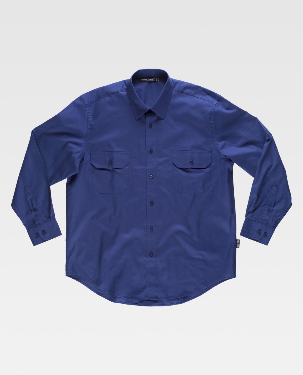 Chemise en coton à col classique et boutonnage central. Deux poches poitrine plaquées avec rabat boutonné. Manches longues avec poignets boutonnés. Dos avec empiècement. Coutures renforcées, ourlet arrondi et boutons assortis. Chemise en coton à col classique et boutonnage central. Deux poches poitrine plaquées avec rabat boutonné. Manches longues avec poignets boutonnés. Dos avec empiècement. Coutures renforcées, ourlet arrondi et boutons assortis.