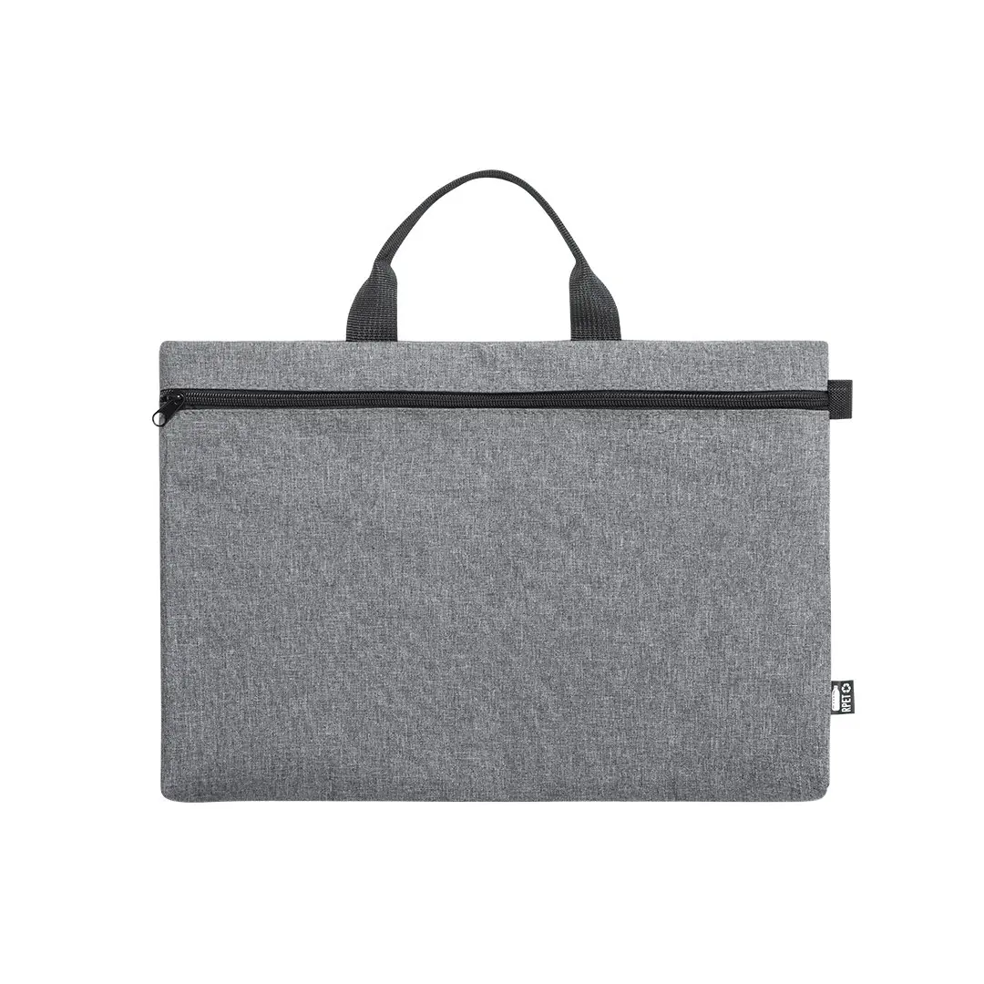 Porte documents de la ligne naturelle et en effet de mélange RPET 600D résistant, fabriqué à partir de plastique recyclé pour promouvoir la réutilisation des déchets plastiques et contribuer à la durabilité de la planète. Détails noirs et compartiment principal avec fermeture éclair. Poignées assorties résistantes et RPET distinctif sur l’étiquette extérieure.