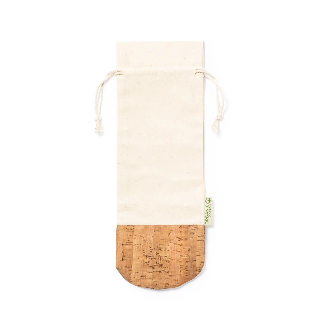 Sac à bouteilles de la ligne Nature. Fabriqué en 100% coton biologique, avec une fermeture à cordon et une base en liège naturel. Idéal pour les bouteilles de 750 ml.