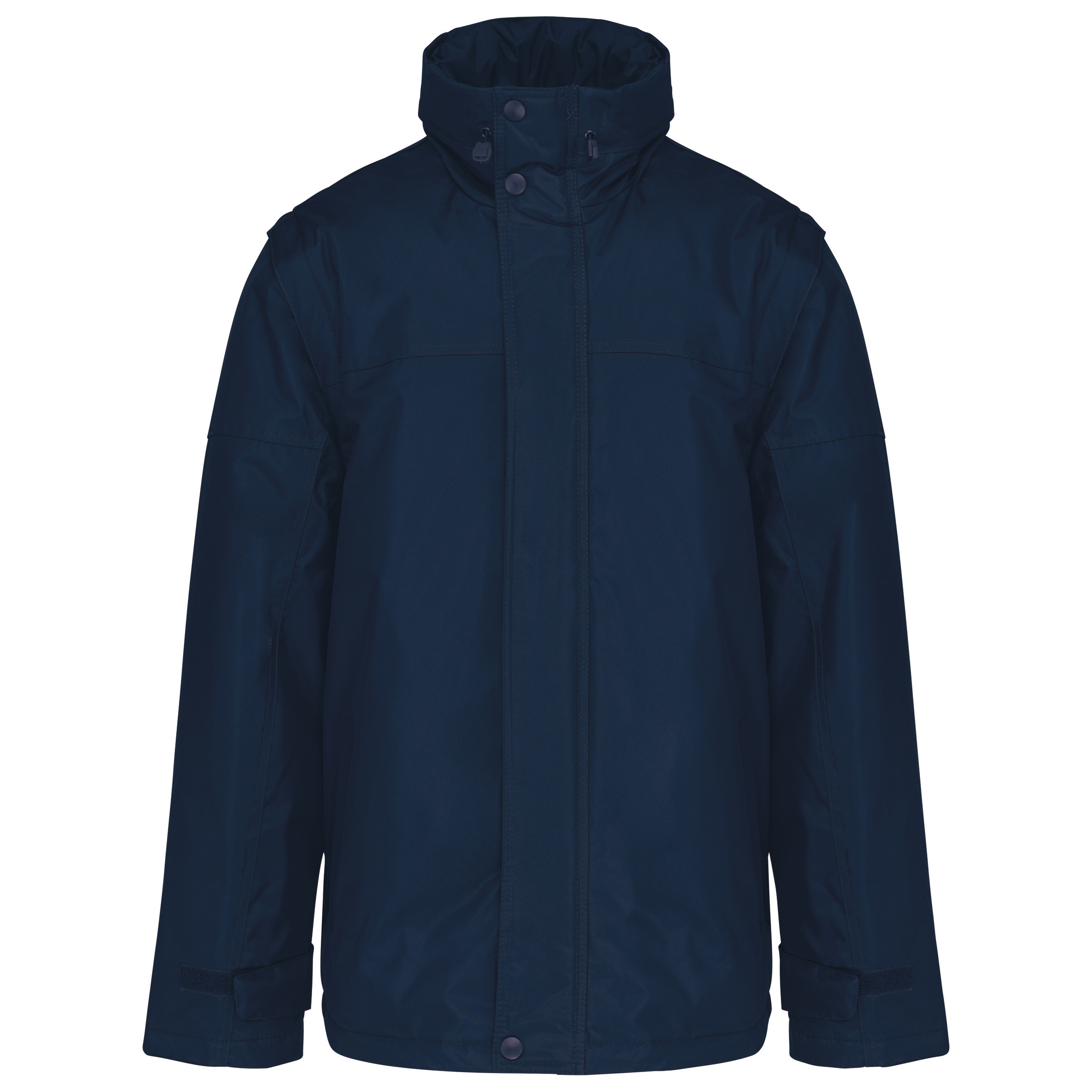 Extérieur : 100% polyester enduction PVC. Fermeture zippée et patte de boutonnage à pressions. Patte de serrage bas de manche auto-agrippante. Capuche dans col, fermeture zippée avec cordon élastique. 2 poches intérieures + 1 poche pour téléphone portable. Zip intérieur pour personnalisation. Doublure corps : 100% polyester et ouate 100% polyester. Manches amovibles. 2 poches latérales passepoilées. Cordon de serrage au bas avec stoppeurs. Capuche dans le col. Ouverture par zip pour personnalisation. Enduction PVC pour une meilleure étanchéité du tissu. Fonctionnel et pratique avec poches intérieures et manches amovibles. Doublure au corps et manches pour un confort optimal.