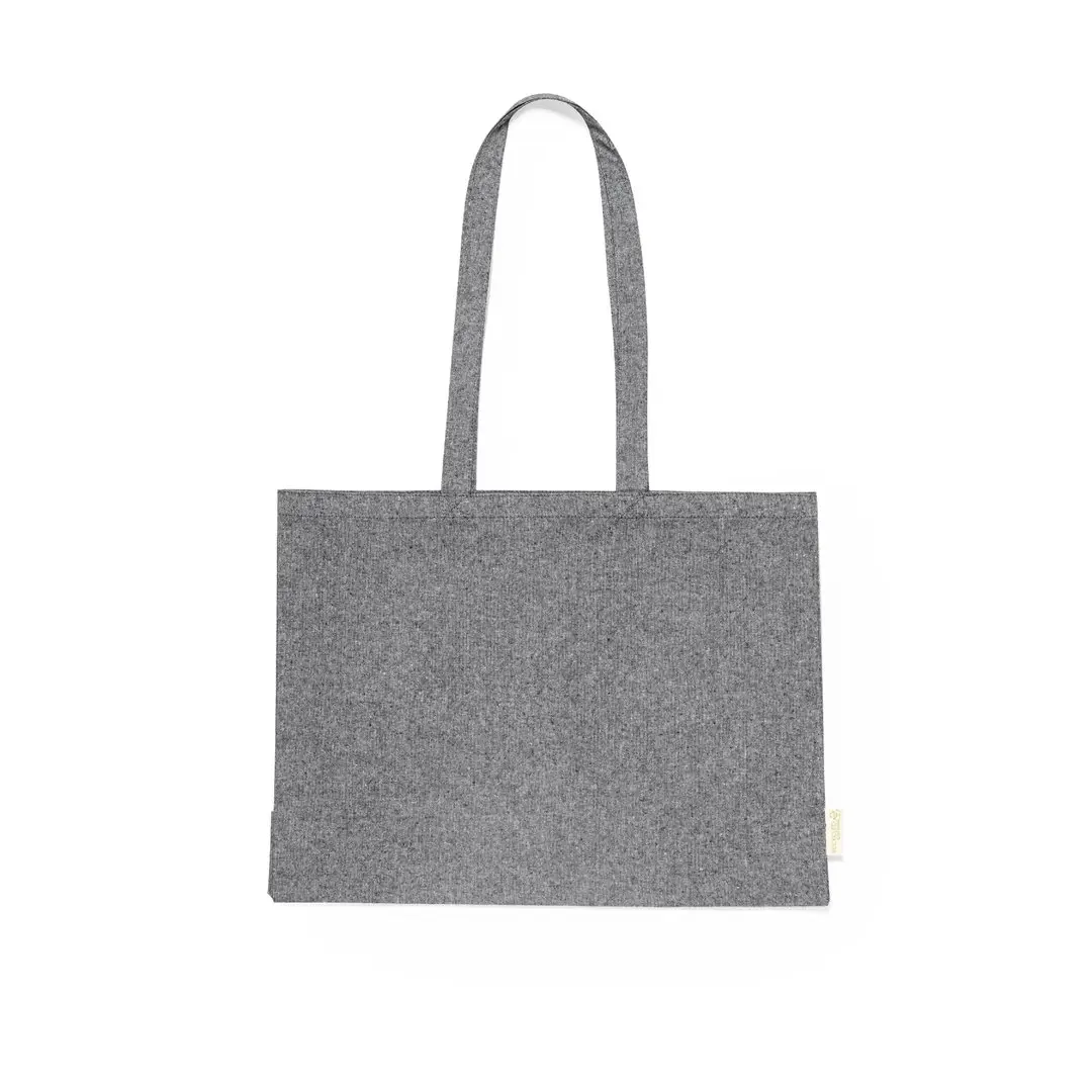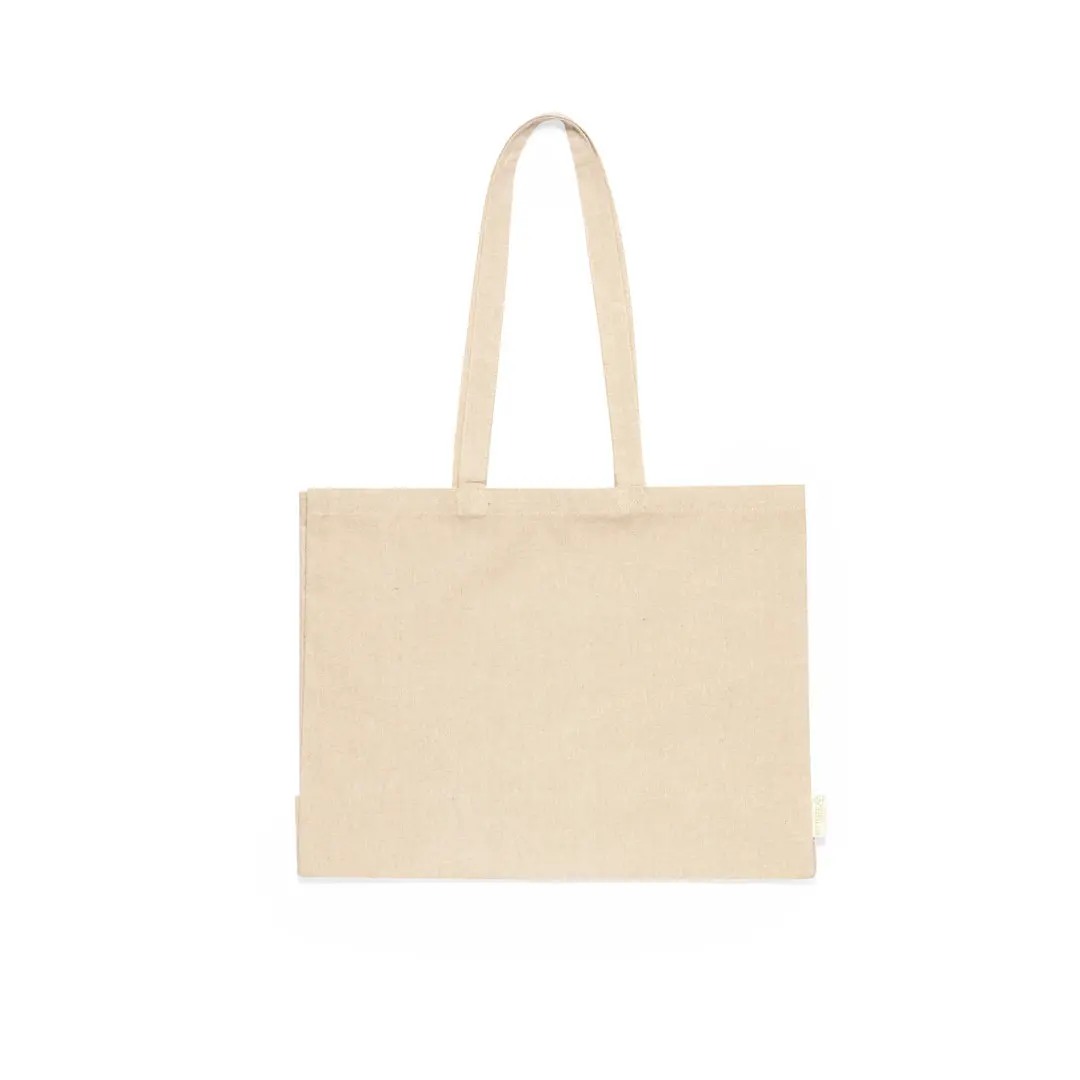 Sac de la ligne Nature, en coton recyclé de haut grammage (240g/m2). Avec une finition cousue et de longues anses renforcées (70 x 2,5 cm). Avec gousset et disponible dans les couleurs naturelles et noires, avec du coton recyclé distinctif sur létiquette extérieure. Résistance jusquà 10 kg de poids.Certification GRS (Global Recycled Standard / Global Recycling Standard), qui garantit lorigine recyclée du matériau utilisé pour fabriquer le produit