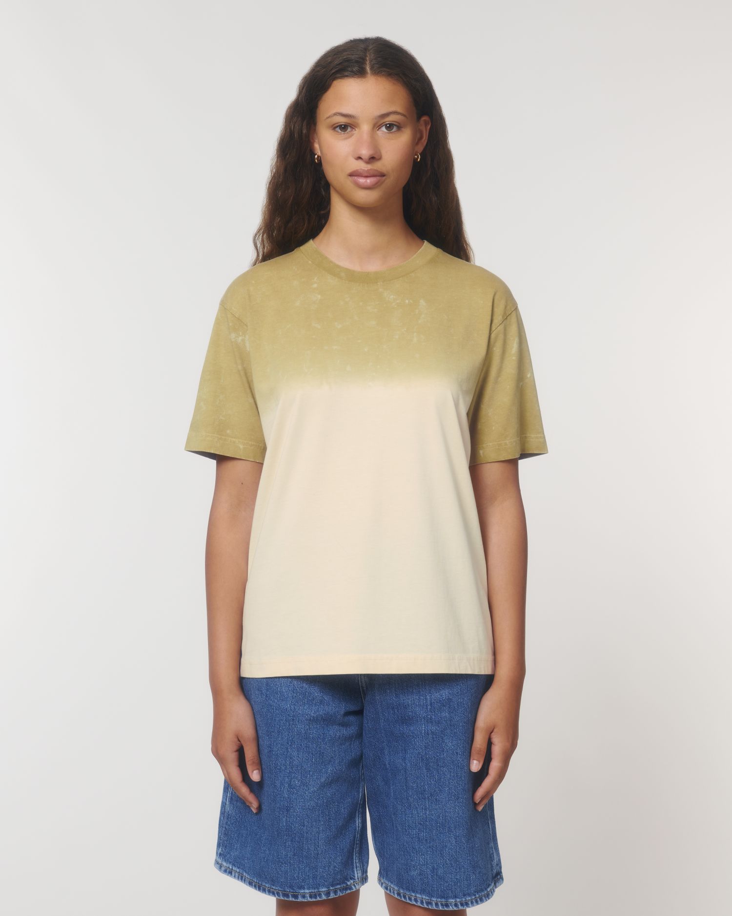 Le T-shirt unisexe, décontracté et aged dip dye. Coupe confortable, Col rond, Manches courtes, Jersey simple. Manches montées Bord en côtes 1x1 sur col Bande de propreté à l’intérieur du col dans la matière principale Surpiqûre double large au bas de manches et de corps Délavage dip dye, chaque vêtement peut varier en apparence, la couleur peut déteindre, suivre les instructions sur l’étiquette d’entretien Lire attentivement les conseils d’impression