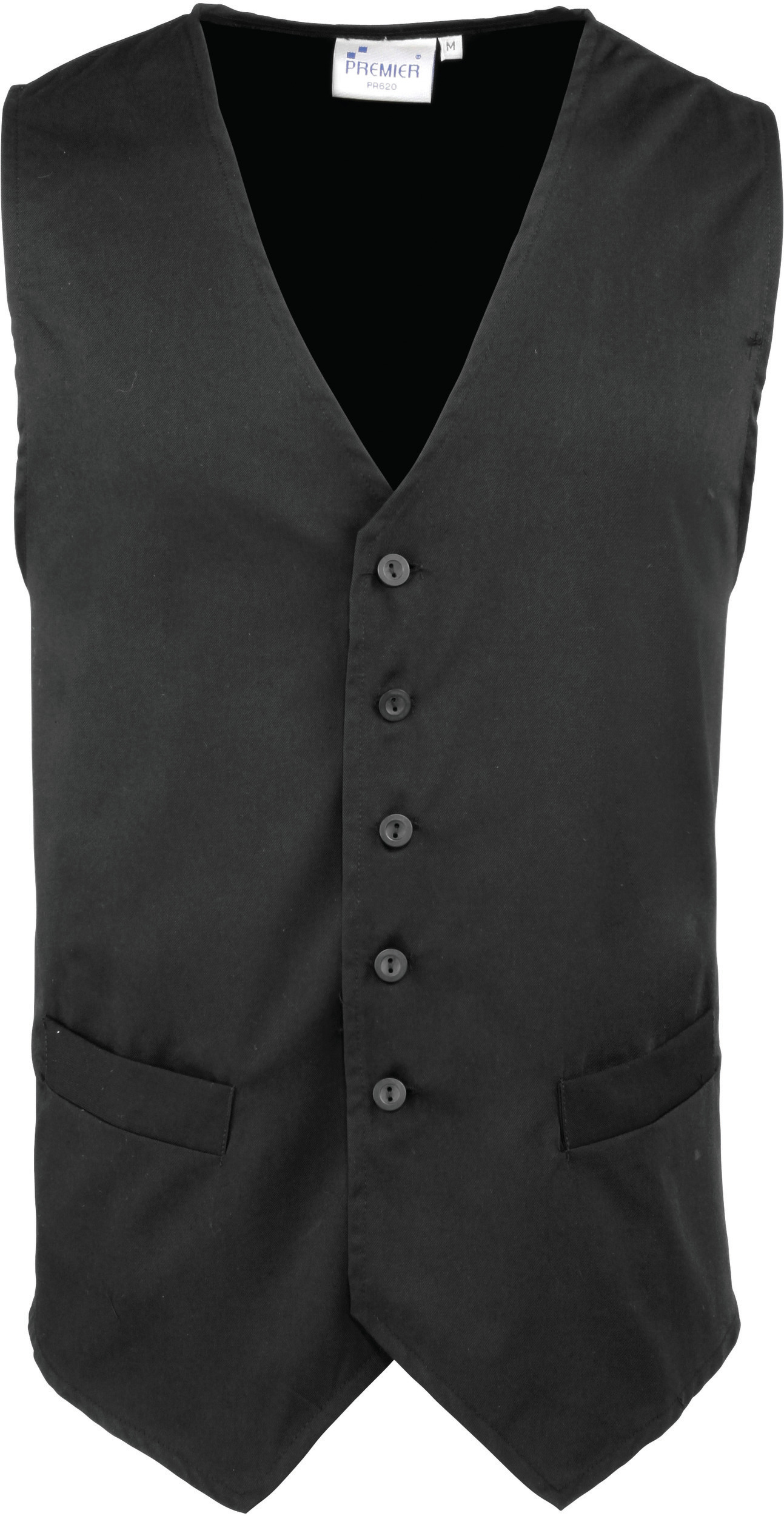 65% polyester 35% coton sergé. Gilet avec 5 boutons. 2 poches avant. Lavage industriel 85°C. Lavage domestique 60°C. Tissage sergé: souple et solide. 2 poches-montre fonctionnelles. Facile d'entretien, peu froissable.