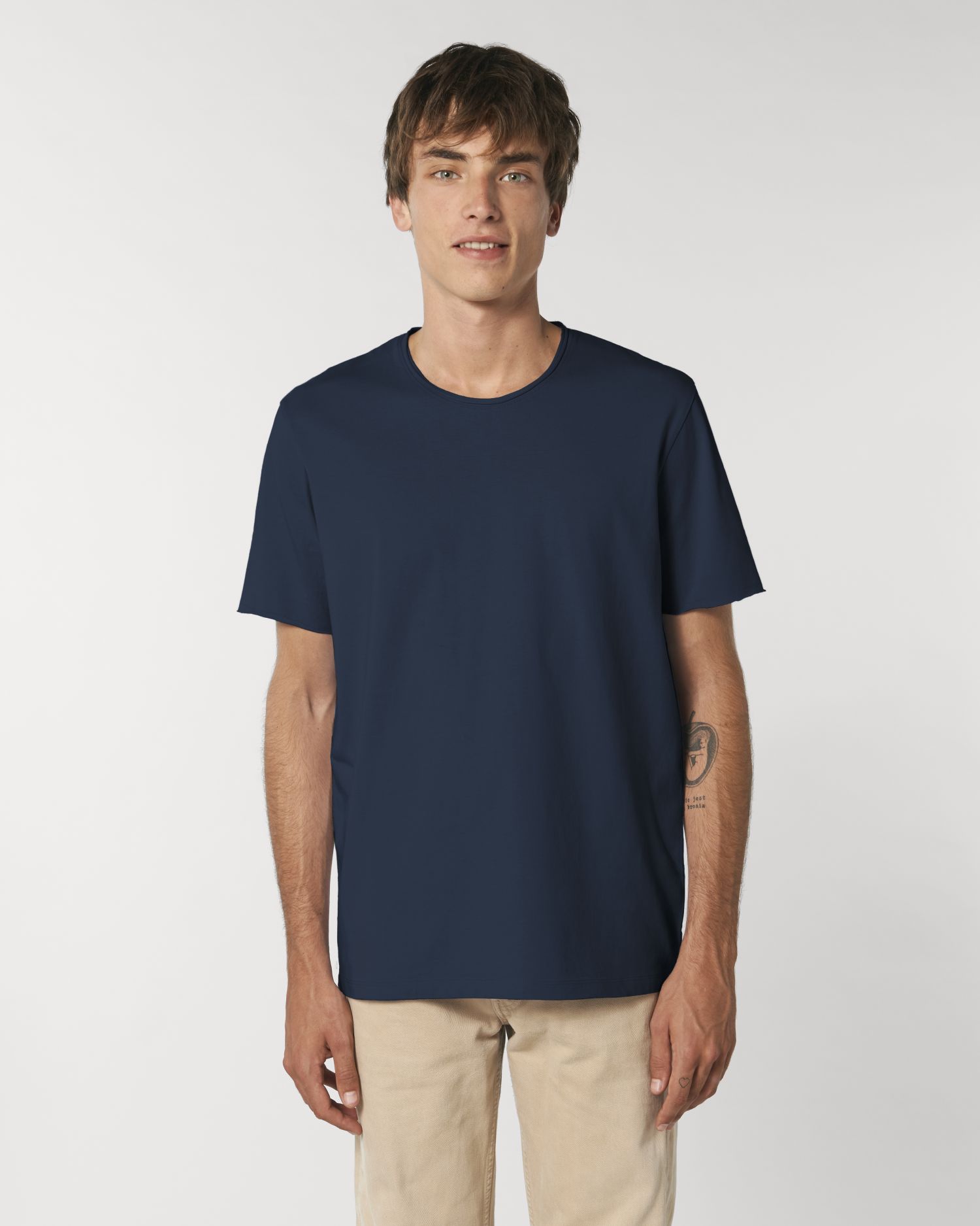 Le t-shirt unisexe à bords francs. Coupe normale, Col rond, Manches courtes, Jersey simple. Manches montées Surpiqûre simple et bord franc à l'encolure Surpiqûre en point de chaînette et bord franc aux bas de manche Surpiqûre double resserrée au bas de corps Produit délavé