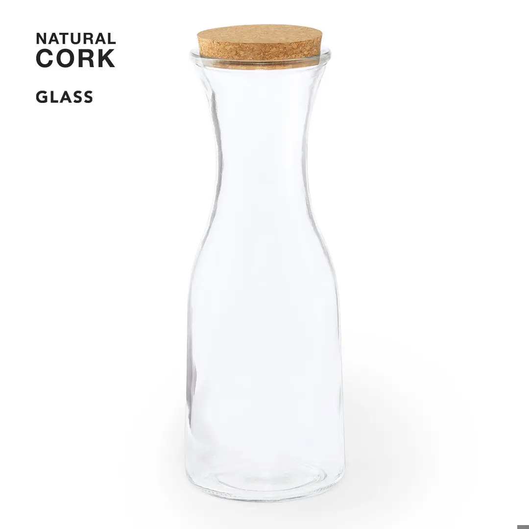 Bouteille de la collection Gamme éco-friendly. En verre, avec un bouchon en liège, pour l´eau, vin et vos jus de fuit. Présenté dans boite individuelle éco design.