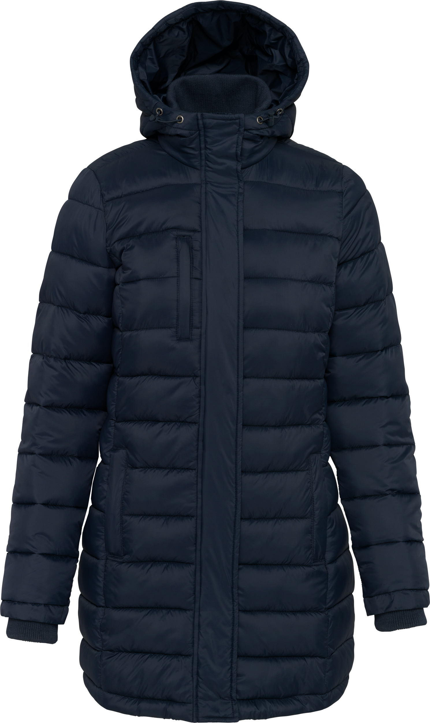 100% polyamide. Garniture intérieure polyester. Chaude et ultralégère. Coupe cintrée. 2 poches devant et 1 poche poitrine zippées et passepoilées. Fermeture zippée avec double curseur cachée par patte et boutons pression. Intérieur capuche et corps contrasté (sauf pour le coloris Navy). Intérieur col et poignets en bord-côte. Parka longue cintrée pour look feminin sportswear et décontracté. Poignets en bord côte pour empêcher le froid de rentrer dans les manches. Chaude, confortable et ultralégère.