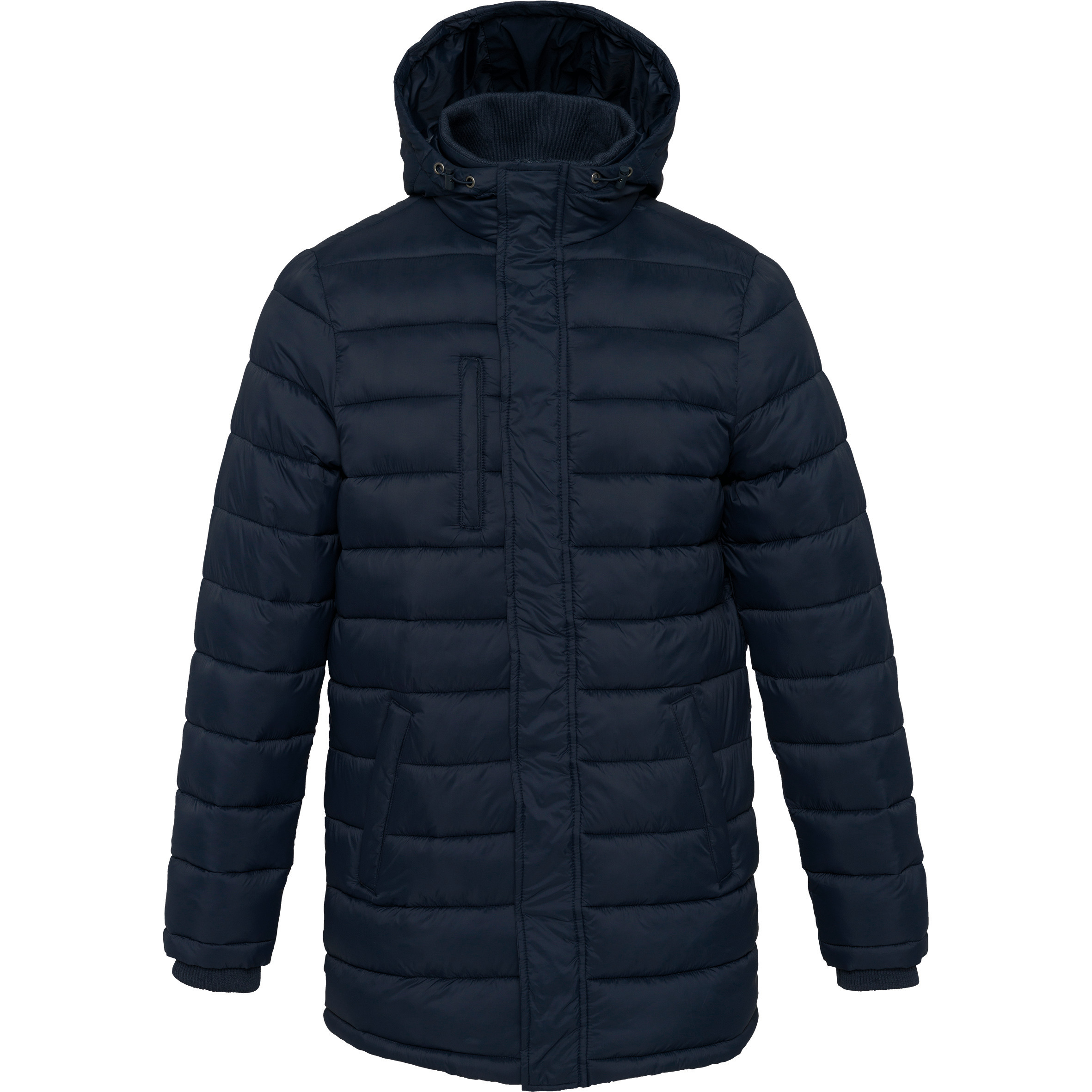100% polyamide. Garniture intérieure polyester. Chaude et ultralégère. 2 poches devant et 1 poche poitrine zippées et passepoilées. Fermeture zippée avec double curseur cachée par patte et boutons pression. Intérieur capuche et corps contrasté (sauf pour le coloris Navy). Intérieur col et poignets en bord-côte. Parka longue au look sportswear et décontracté.