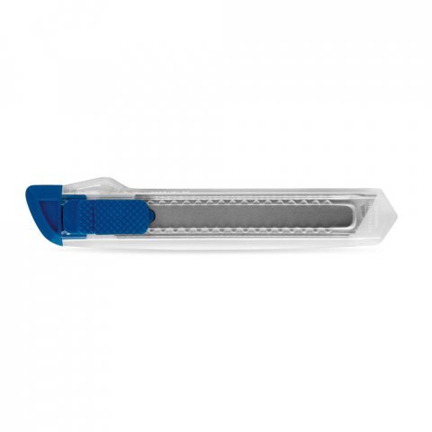 Cutter avec mécanisme de verrouillage pour la sécurité et dessus amovible pour le réglage de la lame. Cutter avec corps transparent.155 x 30 x 10 mm