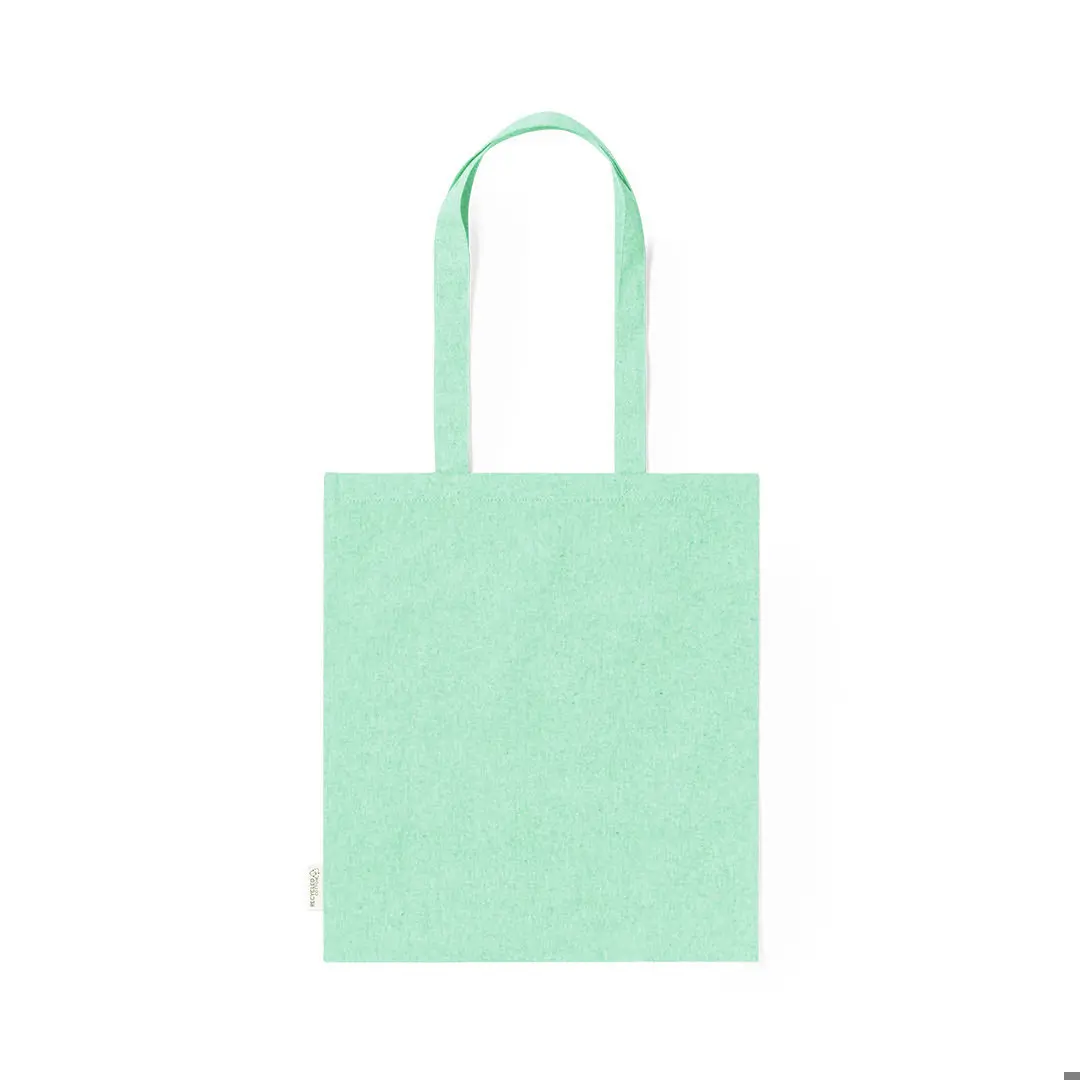 Sac en coton 100% recyclé de 140g/m2. Certification GRS (Global Recycled Standard), qui garantit l’origine recyclée du matériau utilisé pour fabriquer le produit. Finition cousue, avec de longues poignées renforcées de 70 cm et disponible dans une large gamme de couleurs. Résistance jusqu’à 8 kg, étiquette incluse avec badge en coton recyclé.