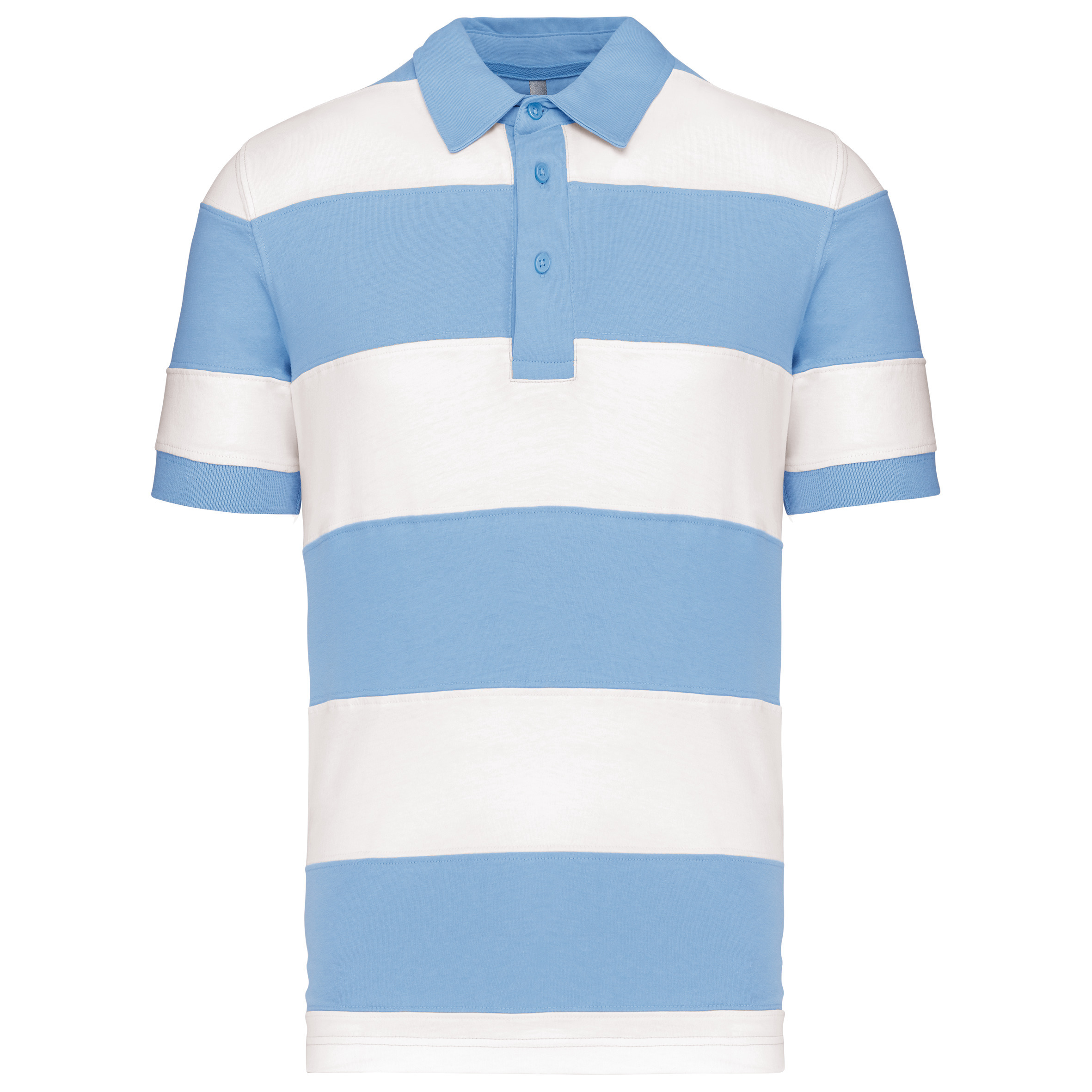 100% coton jersey lavé. Doux au toucher. Larges rayures coupées/cousues. Patte de boutonnage 3 boutons. Bord-côte 1x1 au bas des manches. Col chemise. Petites fentes latérales avec tresse et finition double aiguille au bas du vêtement. Certifié STANDARD 100 by OEKO-TEX®N° CQ1007/7, IFTH. Polo style rugby à larges rayures. Toucher doux et confortable. Confection 100% coton jersey lavé.