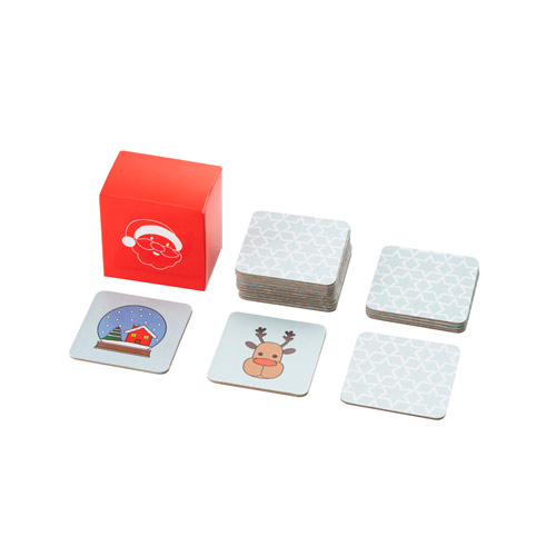 Jeux de mémoire avec 20 pièces sur le thème de Noël, léger et facile à transporter. La boîte est personnalisée et sert à ranger le jeu. Pièces: 50 x 50 x 1.5 mm | Coffret: 56 x 54 x 35 mm