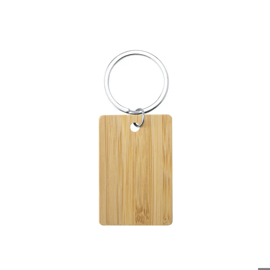 Porte-clés en ligne naturelle en bambou, disponible en design circulaires, carrés et rectangulaires.