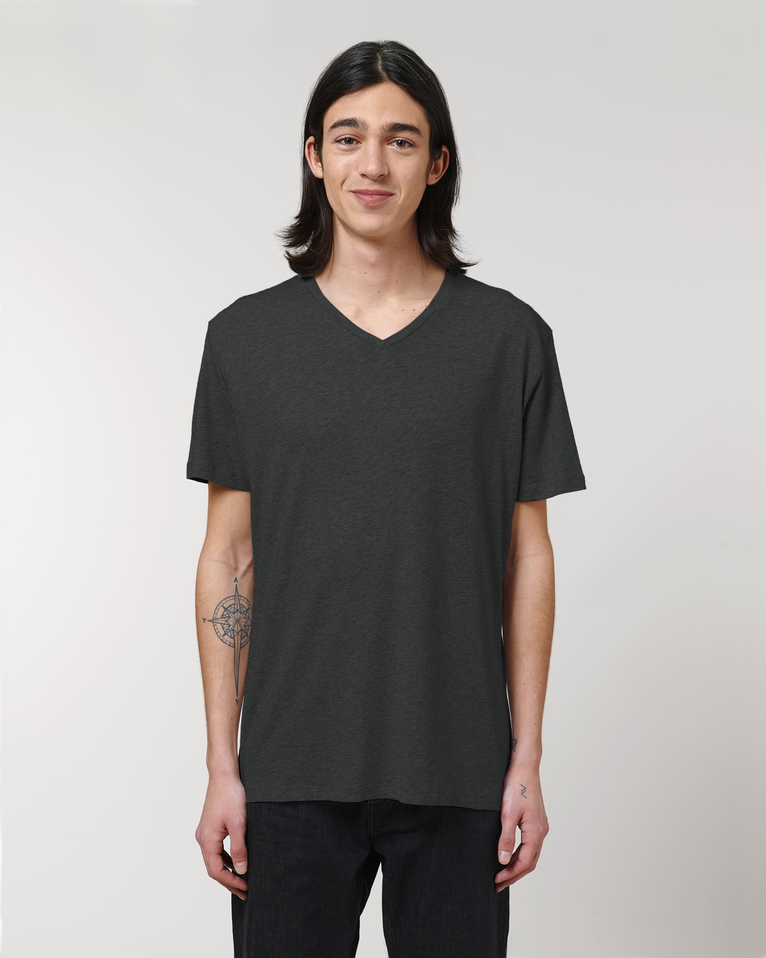 Le T-shirt col V homme. Coupe normale, Col en V, Manches courtes, Jersey simple. Manches montées