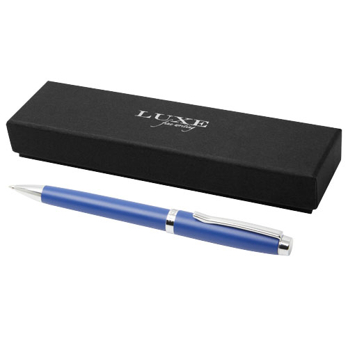 Stylo bille élégant au design exclusif, disponible en trois couleurs. Préchargé avec une recharge d'encre noire et conditionné dans un coffret cadeau Luxe.