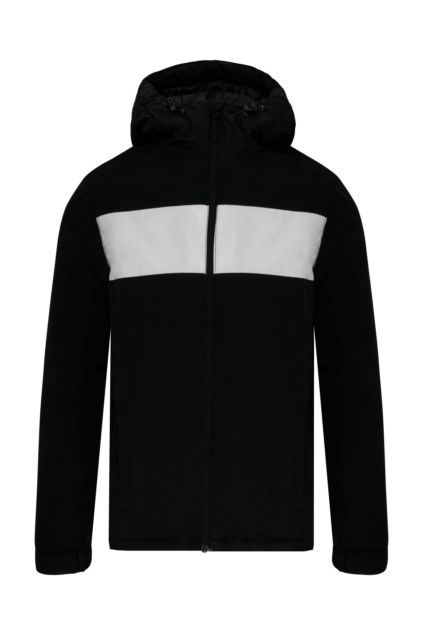 100% polyester. Extérieur : 100% polyester avec traitement déperlant et toucher peau de pêche. Doublure 100% polyester taffetas. Ouatinage 100% polyester. Fermeture zippée. 2 poches zippées côtés cachées et 1 poche intérieure plaquée. Bande contrastée devant. Capuche en 3 parties matelassée avec stoppeurs. 1 étiquette pour noter son nom à l'intérieur côté droit niveau poitrine. Bas de manches semi-élastiqué. 1 zip côté cœur et 1 zip au bas du vêtement pour accès personnalisation. Poids moyen taille L : 775 g. 100% polyester avec traitement déperlant et toucher peau de pêche. 1 étiquette pour noter son nom à l'intérieur 1 zip au bas du vêtement pour accès personnalisation.