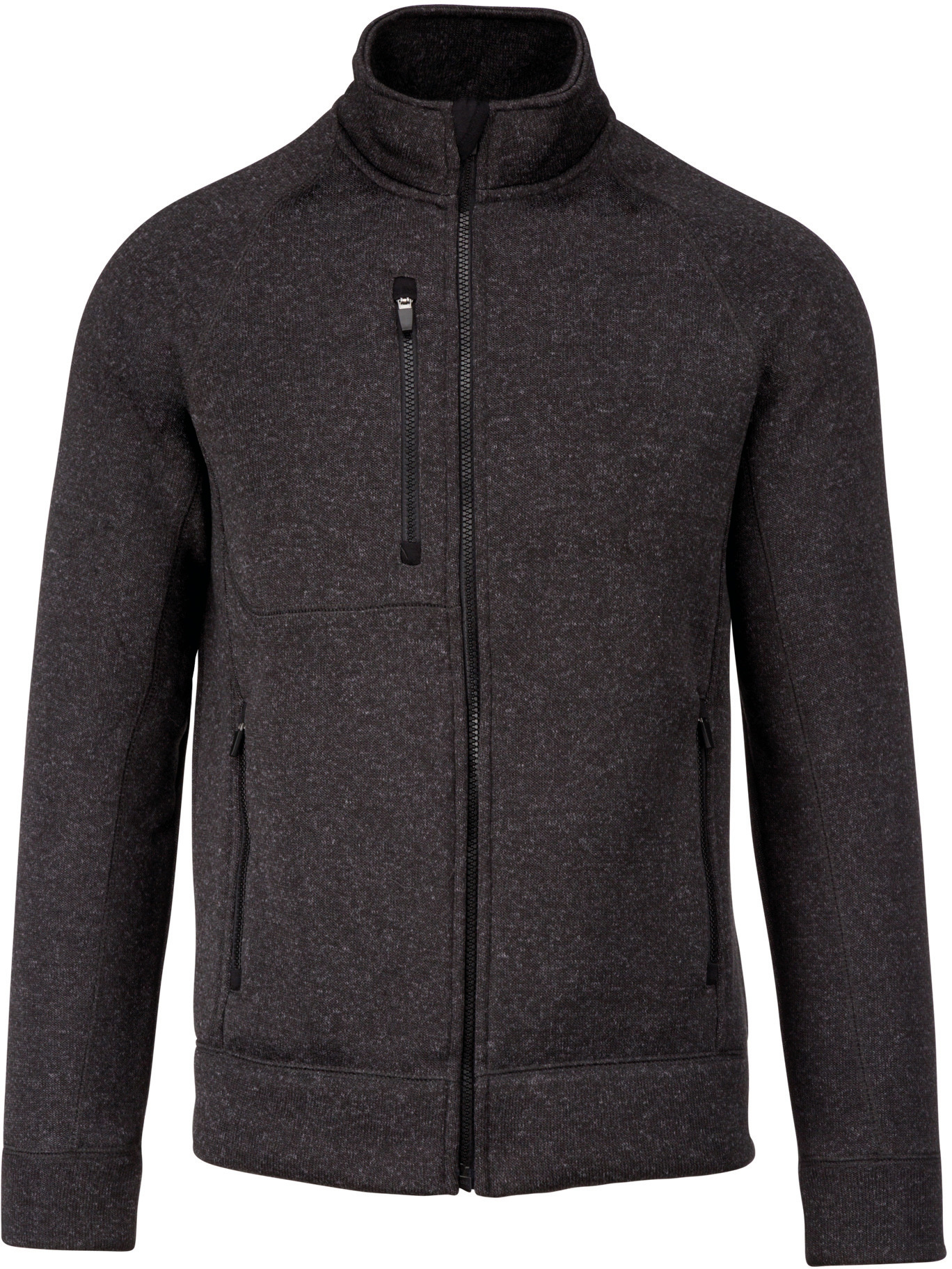 Tricot intérieur gratté 100% polyester. Manches raglan. Fermeture zippée. 2 poches zippées contrastées devant et 1 poche poitrine zippée contrastée. Point de recouvrement sur les découpes. Coupe et matière très confortables. Certifié STANDARD 100 by OEKO-TEX®N° CQ1007/8, IFTH. Tricot intérieur gratté : douceur et chaleur. Épaisse, ultra confortable. Manche raglan : confort et allure sportive.